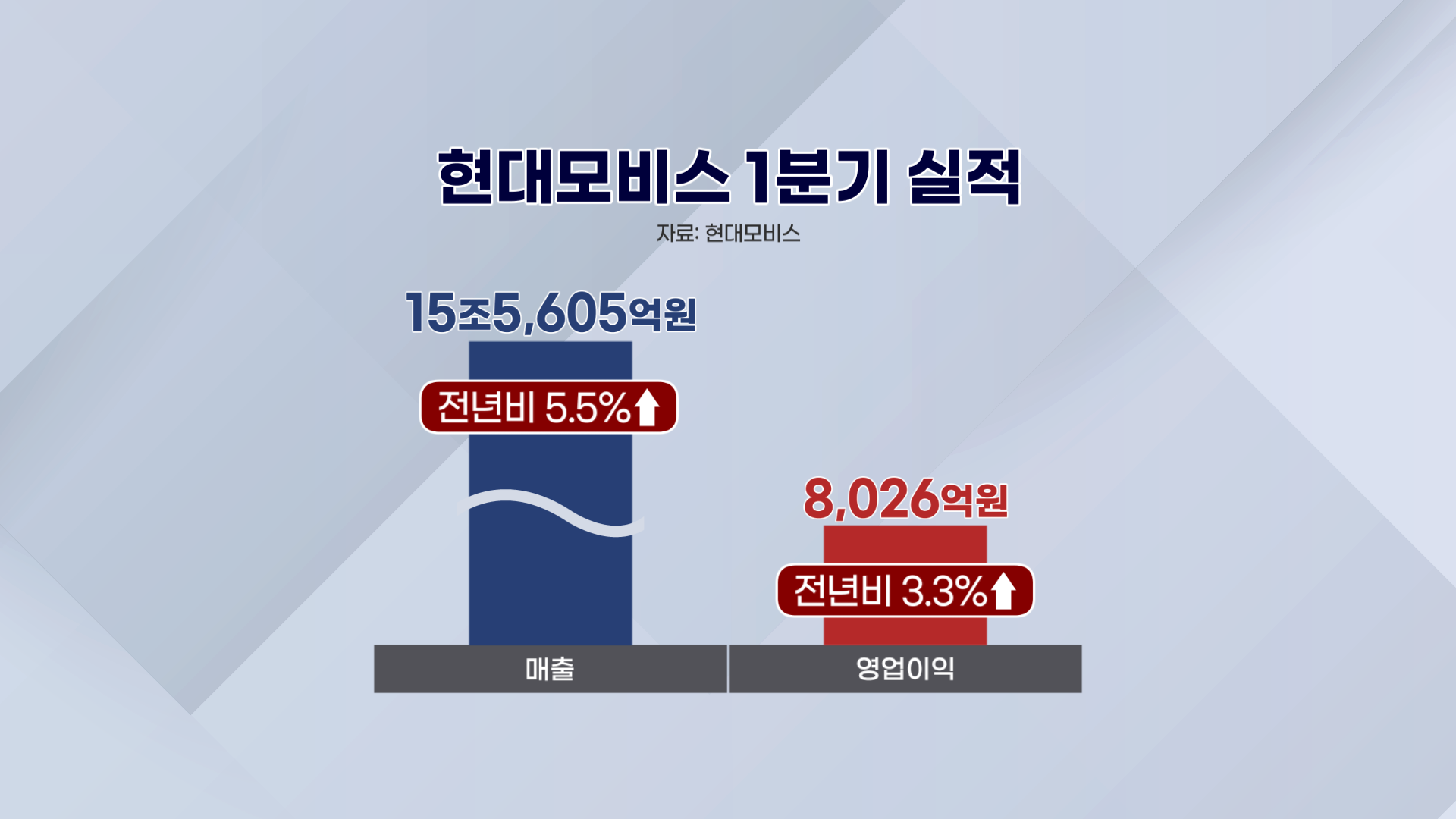 현대모비스는 올해 1분기 매출 15조5,605억원, 영업이익 8,026억원을 기록했습니다.