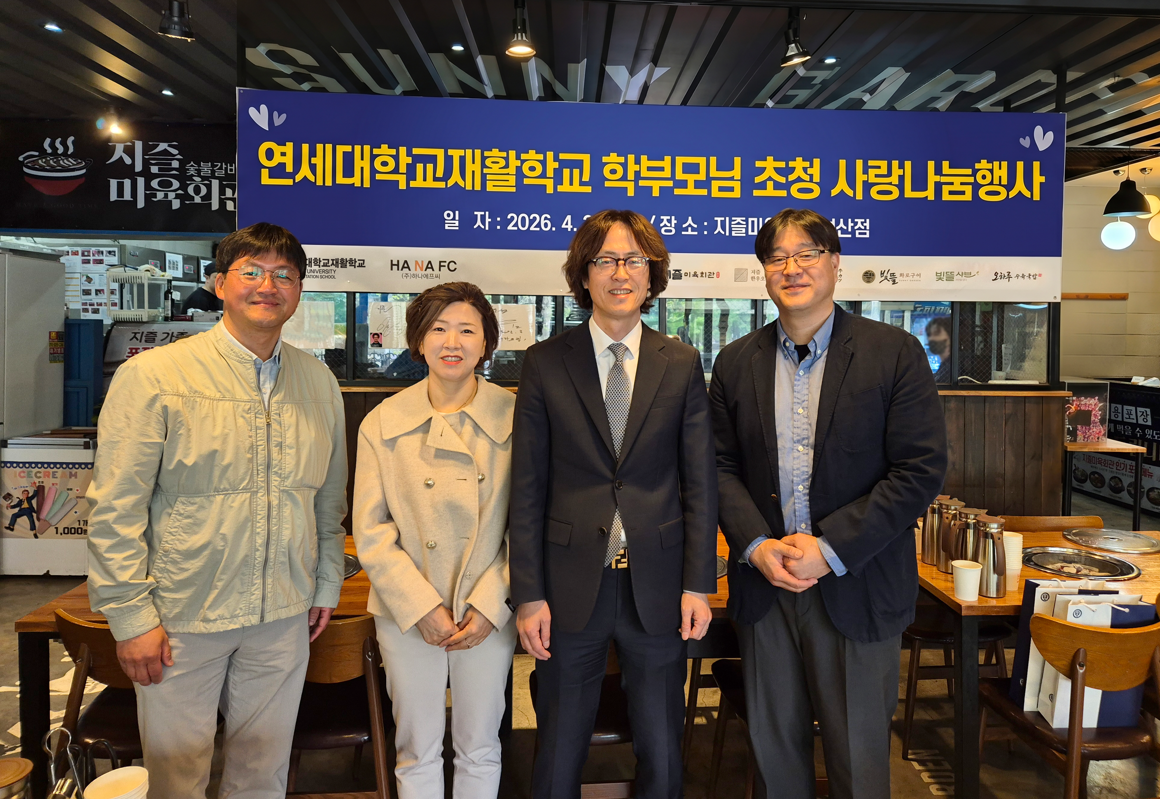 하나에프씨는 서울 마포구 성산동에 위치한 ‘지즐미육회관 성산점’에서 연세대학교재활학교 학부모 30여명을 초청해 식사 나눔 행사를 진행했다고 24일 밝혔다.