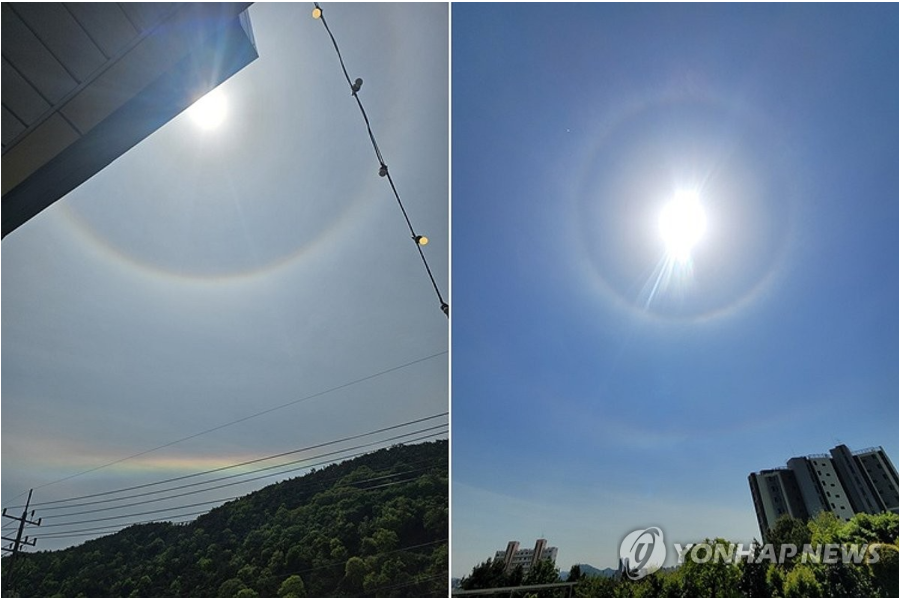 27일 연합뉴스에 따르면 이날 화순군 도곡면 일대 상공과 광주시 북구 오룡동 일대광에서 태양을 중심으로 한 둥근 고리 형태의 햇무리가 관측됐다.