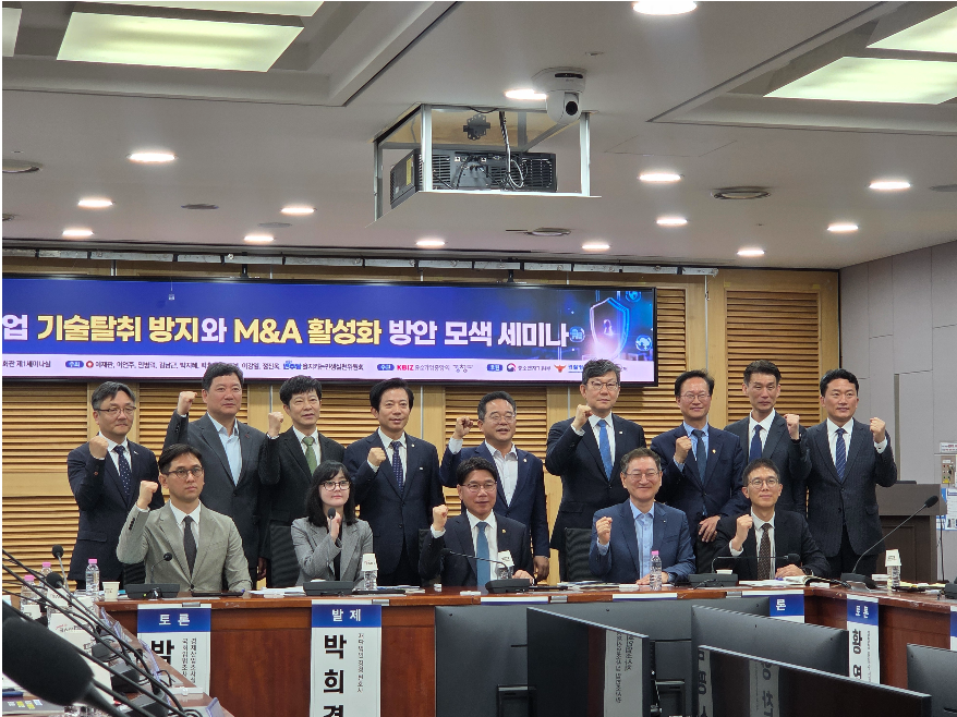 세미나에는 민병덕·김남근·송재봉·이강일 의원과 중소벤처기업부, 지식재산청, 경찰청, 기술보증기금, 국회입법조사처, 중소기업중앙회 관계자들이 함께했다.