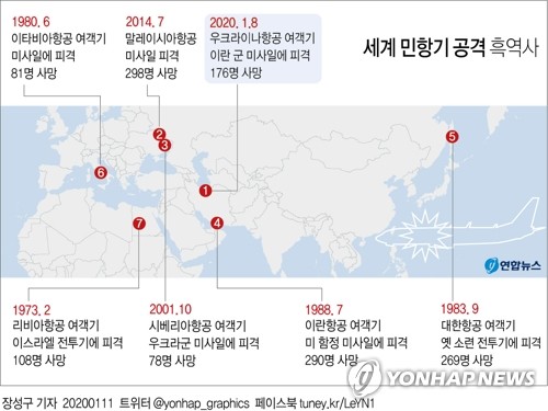 다음은 세계 각지에서 벌어진 주요 민항기 공격 사례다.