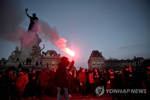 이날도 파리 동부에서는 연금 개편에 항의하는 시위대 수천 명이 집결해 행진했다.