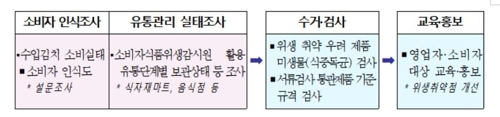 소비자식품위생감시원을 활용해 유통단계별 보관상태를 조사하고, 위생이 취약한 상태에서 보관된 제품에 대해서는 미생물(식중독균) 검사를 시행한다.