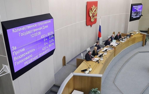 (모스크바=연합뉴스) 유철종 특파원 = 러시아 하원이 23일(현지시간) 블라디미르 푸틴 대통령이 제출한 부분 개헌안을 1차 승인했다.