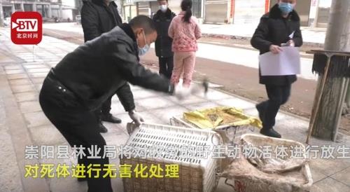 우한 폐렴의 원인이 박쥐 등 야생동물을 먹는 식문화 때문인 것으로 알려진 가운데 후베이성 충양(崇陽)현에서 야생동물을 불법 유통한 업자가 중국 공안당국에 붙잡혔다.