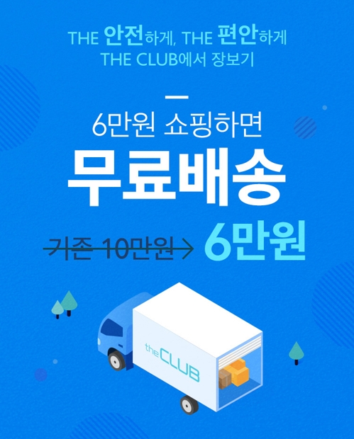 기존에는 10만원 이상 구매 시 무료배송을 받을 수 있었지만 내달 31일까지는 6만원 이상 구매하면 무료 배송받을 수 있다.