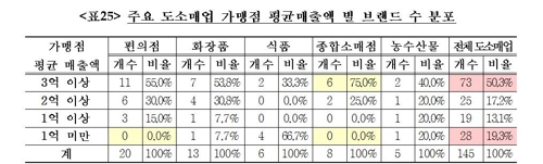 도소매 가맹점(5만6천420개) 중 76%(4만2천712개)는 편의점이었다.