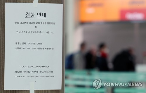 (서울=연합뉴스) 이영섭 기자 = 몽골이 신종 코로나바이러스 감염증(코로나19) 확산을 막기 위해 중국과 한국에 이어 일본에서 오는 항공편의 운항도 중단했다고 로이터통신이 26일(현지시간) 전했다.