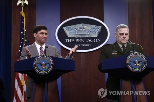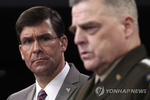 (워싱턴=연합뉴스) 백나리 특파원 = 마크 에스퍼 미 국방장관은 2일(현지시간) 신종 코로나바이러스 감염증(코로나19) 확산과 관련해 미국 안팎을 아우르는 모든 시나리오에 대비하고 있다고 밝혔다.