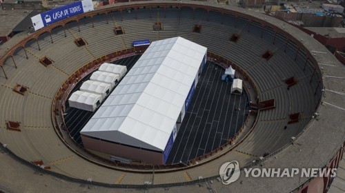 31일(현지시간) AP통신에 따르면 전 국민 격리령이 내려진 페루에서는 수도 리마의 유서 깊은 투우장이 노숙자 쉼터로 변신했다.