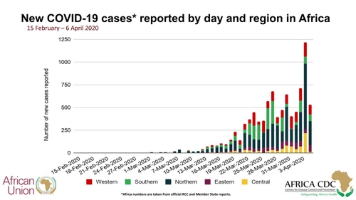 코로나19 발병국은 아프리카 54개국 가운데 51개국에 달해 사실상 대륙 대부분이 영향권에 들어갔다.