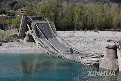 ANSA 통신 등에 따르면 이날 오전 10시 30분께 중부 토스카나주(州) 마사 카라라 지역 마그라강을 가로지로는 260m 길이 교량이 내려앉았다.
