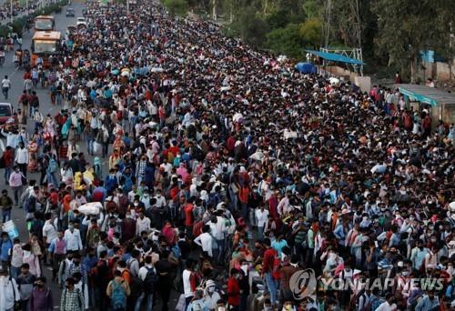 앞서 지난달 말에는 뉴델리 등의 일용직 근로자 수십만명이 일제히 고향으로 돌아가겠다고 나선 바람에 시외버스 정류장과 주 경계 등이 아수라장으로 변하기도 했다.