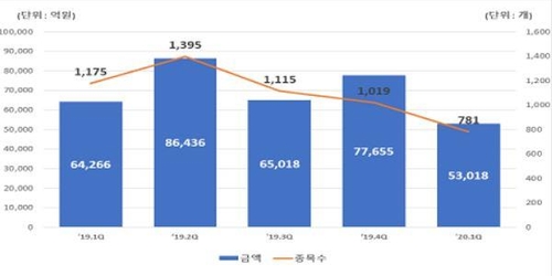 (서울=연합뉴스) 김기훈 기자 = 신종코로나 바이러스 감염증(코로나19) 확산으로 인한 경제적 충격에 올해 1분기 파생결합증권(DLS) 발행금액이 급감한 것으로 나타났다.