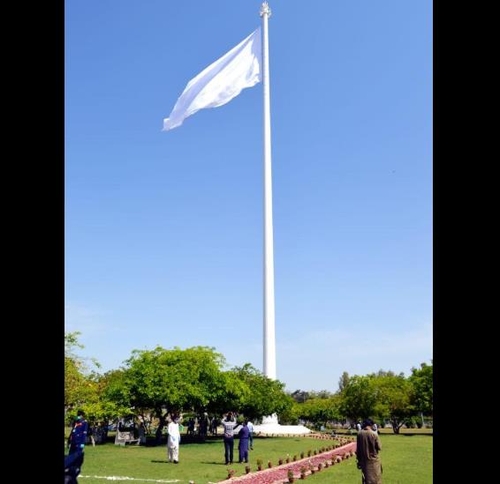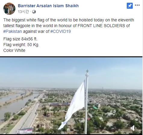 21일 익스프레스트리뷴 등에 따르면 파키스탄 남부 수쿠르시 시장 아르살란 이슬람 샤이크는 전날 세계 최대 규모 백기 게양식을 가졌다.