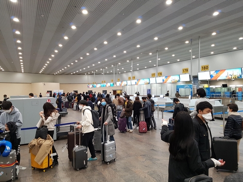 승객들은 항공사 측이 실시한 발열 검사를 받고 탑승 수속을 밟았다.
