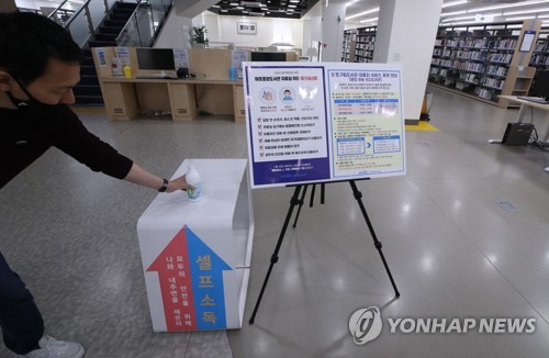 사전 방문 예약한 제한된 인원만 도서관을 직접 방문해 자료 대출 및 반납, 상호대차 및 예약도서 수령은 가능하나 책을 보기 위해 도서관 내 열람석을 이용하는 것은 불가하다. [연합뉴스 자료사진]'/>