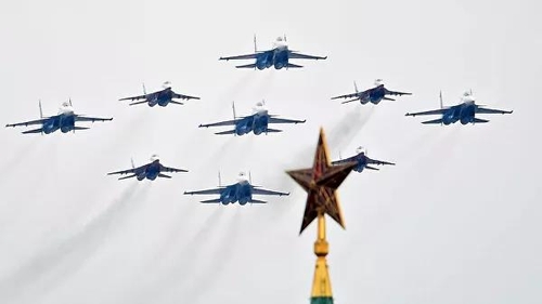 뒤이어 모스크바 상공에선 75대의 전투기·폭격기·헬기 등이 참여한 항공 퍼레이드가 펼쳐졌다.