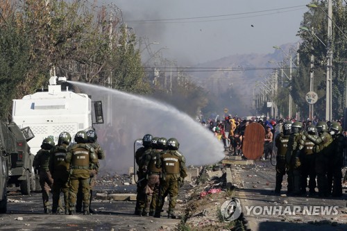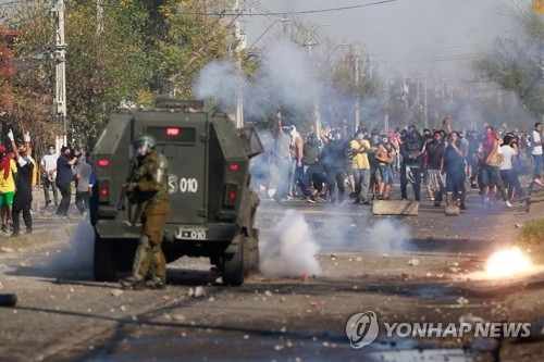 산티아고 빈곤층 거주지역에서 시위대·경찰 충돌