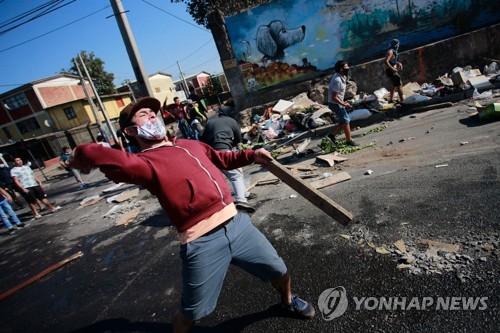 (멕시코시티=연합뉴스) 고미혜 특파원 = 신종 코로나바이러스 감염증(코로나19) 봉쇄가 길어지며 생활고가 심해진 칠레 저소득층들이 정부의 지원 부족에 항의하며 시위를 벌였다.