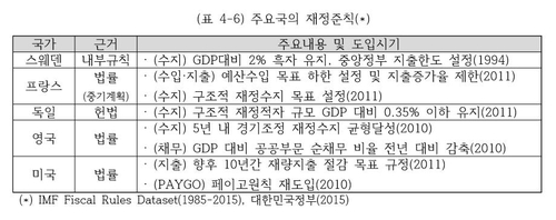 정부 관계자는 "재정준칙 도입과 관련해 여러 대안과 외국 사례를 살펴보고 있다"고 말했다.