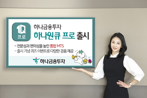 (서울=연합뉴스) 이지헌 기자 = 하나금융투자는 국내주식 및 해외주식 매매 서비스를 하나의 애플리케이션(앱)으로 통합한 모바일트레이딩시스템(MTS) '하나원큐 프로'를 새로 선보였다고 15일 밝혔다.