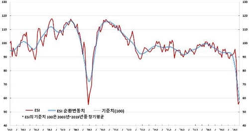 한은 관계자는 "코로나19로 기업과 소비자의 체감 경기가 크게 하락해 ESI 순환변동치도 크게 낮아졌다"고 설명했다.