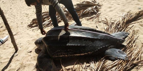 3일 일간 콤파스 등에 따르면 지난달 28일 오후 7시께 동누사뜽가라주 사부라이주아군 해변에서 낚시 다녀오던 주민 두 명이 장수거북(Leatherback sea turtle)을 발견했다.