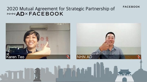 (서울=연합뉴스) 이효석 기자 = NHN[181710]의 마케팅 자회사 NHN AD는 페이스북 아태지역 본부와 디지털 마케팅 사업 협력을 위한 전략적 파트너십을 체결했다고 10일 밝혔다.
