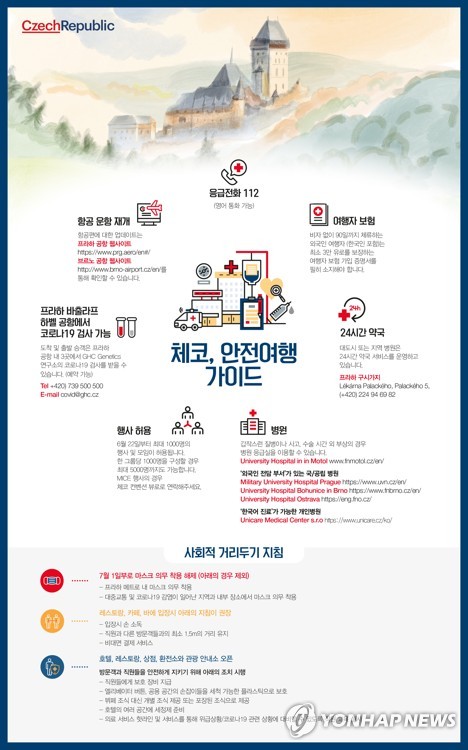 체코관광청 관계자는 "한국인 여행객이 아무런 제한 없이 체코에 입국할 수 있도록 국경 개방을 결정했다"면서 "이는 유럽연합이 코로나19 저위험 국가로 한국, 일본, 뉴질랜드, 캐나다 등을 선정한 결정을 따른 것"이라고 밝혔다.