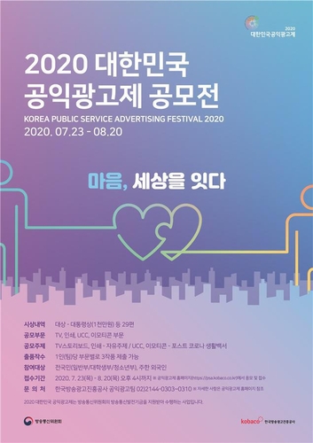 (서울=연합뉴스) 조성흠 기자 = 한국방송광고진흥공사(코바코)는 방송통신위원회와 '마음, 세상을 잇다'를 주제로 '2020 대한민국 공익광고제'를 개최한다고 24일 밝혔다.