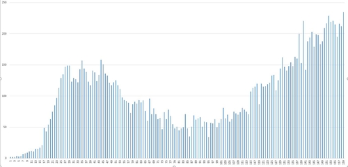 이날 하루 사망자는 2월19일 첫 사망자 발생 이후 가장 많다. 이전 하루 최다 사망자수는 229명(7월21일)이었다.