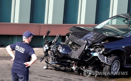이라크 난민 출신의 30대 남성이 운전한 자동차가 오토바이와 자동차 여러 대를 들이받았다.