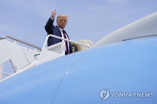 (워싱턴=연합뉴스) 송수경 특파원 = 도널드 트럼프 미국 대통령이 민주당 전당대회 마지막 날인 20일(현지시간) 민주당 대선후보인 조 바이든 전 부통령의 수락연설을 김 빼기 위해 맞불 행보에 나서며 '바이든 때리기'에 올인했다.