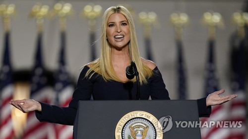 (워싱턴=연합뉴스) 백나리 특파원 = 4년 전과 마찬가지로 이번에도 공화당 대선후보 수락연설을 앞둔 도널드 트럼프 미국 대통령을 소개한 건 장녀 이방카 트럼프 백악관 선임보좌관이었다.