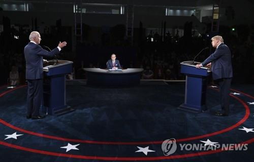 (워싱턴=연합뉴스) 류지복 특파원 = 29일(현지시간) 밤 개최된 미국의 첫 대선 후보 TV토론은 도널드 트럼프 대통령의 빈번한 발언 끼어들기로 진행자가 진땀을 흘렸다.