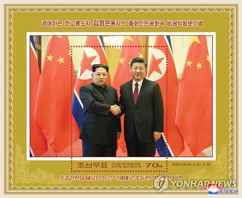 또 김정은 북한 국무위원장의 모습이 가운데 담긴 정치집회 기념 우표나 그가 중국을 방문했을 때 시진핑(習近平) 중국 국가주석과 나란히 있는 모습을 담은 기념 우표 등을 견본으로 내놓기도 했다.