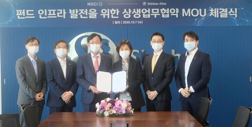 (서울=연합뉴스) 이지헌 기자 = 펀드 사무관리회사인 신한아이타스는 7일 모건스탠리 캐피털인터내셔널(MSCI)과 펀드 인프라 발전을 위한 상생업무협약(MOU)을 체결했다고 밝혔다.