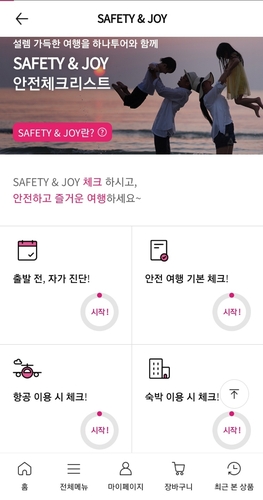 (서울=연합뉴스) 박상돈 기자 = 하나투어는 2일 안전한 여행의 새로운 기준을 마련하기 위해 '안심여행 체크리스트(SAFETY&JOY)'를 업계 최초로 선보였다고 밝혔다.