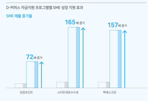 또 자금 융통을 돕는 '퀵에스크로 프로그램'의 지원을 받은 경우 매출 성장률이 157배, 마케팅을 지원하는 '성장 지원 포인트'는 72배를 각각 기록했다.