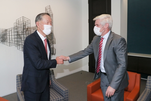 ▲ 허창수 전국경제인연합회 회장은 3일 오후 서울 여의도 전경련 회관에서 미하엘 라이펜슈툴 신임 주한 독일 대사를 만나 신종 코로나바이러스 감염증(코로나19)의 경제적 여파와 보호무역주의 확산 대응 방안 등을 논의했다. 허 회장은 수소차 등 미래산업에서의 시너지 창출을 위한 양국의 협력방안도 언급했다. (서울=연합뉴스) (끝)