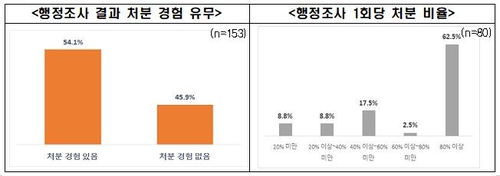 또 행정조사 결과 시정명령과 과태료, 입건 등 처분을 받은 경험이 있다는 응답은 54.1%에 달했다.