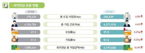 통계청은 이런 내용 등을 담은 2019년 퇴직연금통계를 24일 발표했다.