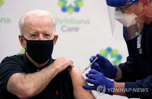 (워싱턴=연합뉴스) 백나리 특파원 = 조 바이든 미국 대통령 당선인은 11일(현지시간) 신종 코로나바이러스 감염증(코로나19) 2차 접종을 했다.