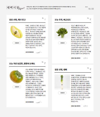현대백화점은 지난달 17일부터 식품 전문 쇼핑몰인 '현대식품관 투홈'에 잡지 형식의 콘텐츠인 '새벽시장 리포트'를 선보이고 있다.