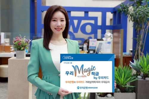 ▲ 우리은행은 우리은행 거래실적과 우리카드 사용실적 충족 시 최고 연 6.0%의 고금리를 제공하는 '우리 Magic 적금 by 우리카드'를 오는 4일 출시한다고 3일 밝혔다. 가입 기간은 1년이며, 월 납입 한도는 최대 50만원이다. 금리는 기본금리 연 1.0%에 우대금리 최대 연 1.0%포인트와 특별우대금리 최대 연 4.0%포인트를 더해 최고 연 6.0%다.