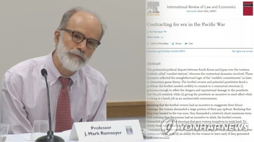 램지어 교수는 IRLE 3월호에 실리는 논문 '태평양 전쟁에서 성매매 계약'에서 위안부 문제를 '매춘업자'와 '예비 매춘부' 간 계약행위로 규정하며 이를 '게임 이론'으로 설명할 수 있다는 주장을 폈다.