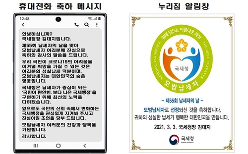 김대지 국세청장은 축하 메시지에서 "우리 국민이 코로나19의 어려움을 이겨낼 희망을 가질 수 있는 것은 여러분의 성실납세 덕분이며, 모범납세자는 대한민국의 숨은 영웅"이라고 감사했다.