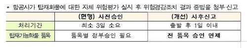 항공사가 탑재화물에 대한 자체 위험평가 실시 후 위험경감조치 결과 증빙을 첨부해 신고하도록 한 것이다.