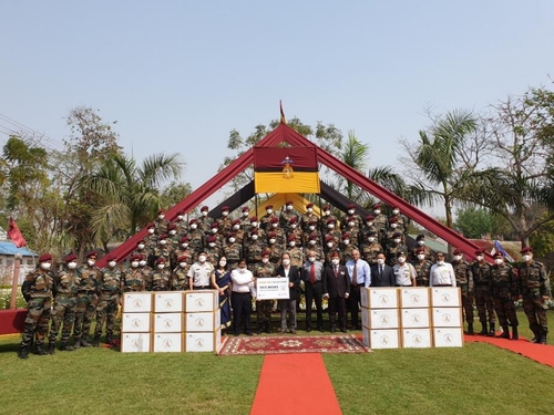 (뉴델리=연합뉴스) 김영현 특파원 = 인도 주재 한국대사관은 10일 현지 6·25 참전용사와 유가족, 보훈단체 회원 등에게 국산 KF마스크 5만장을 전달했다고 밝혔다.